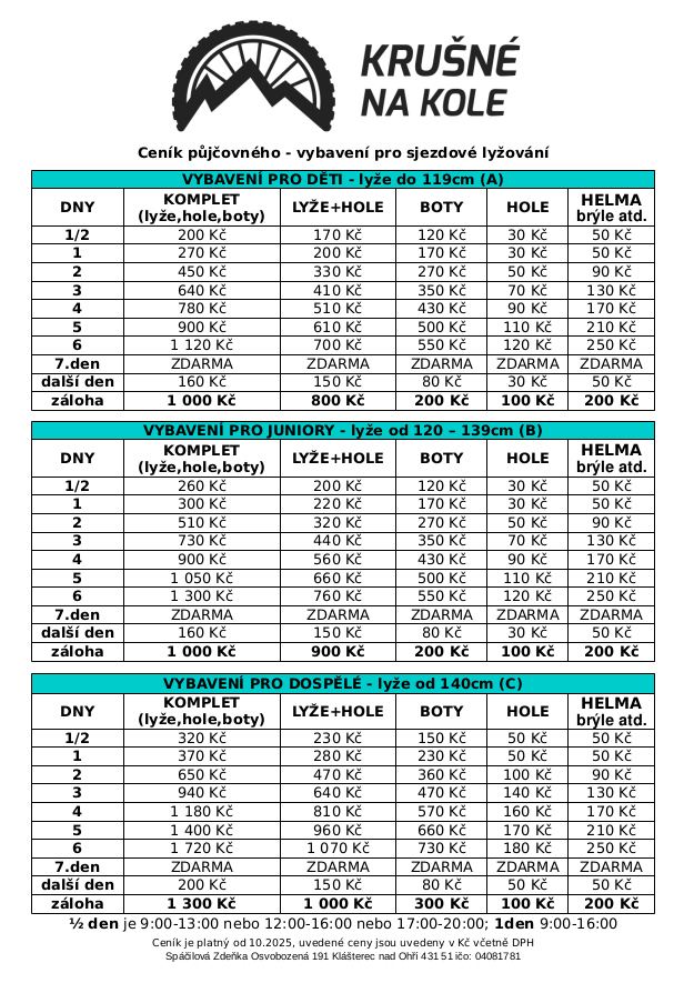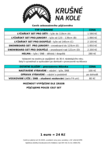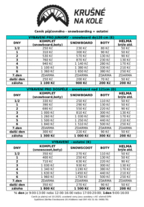 CENÍKY půjčovny vybavení – pobočka ski areál Alšovka: